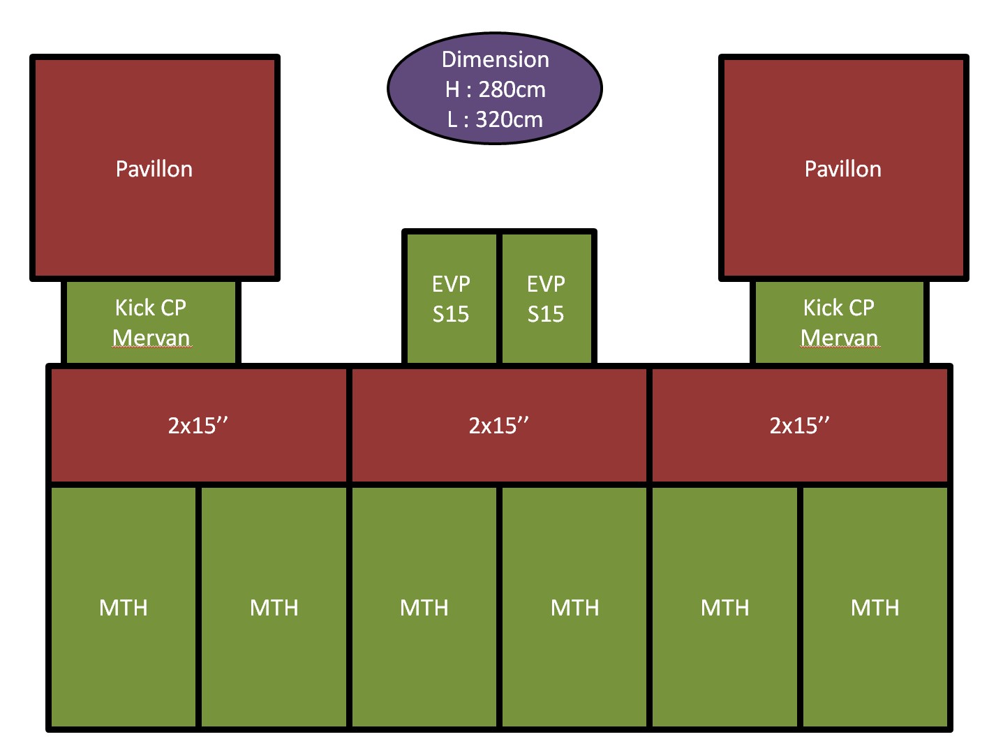 D’origine ton système cinéma c’est 30 / 500 / 16000 Hz. Donc malheureusement il n’y a pas vraiment de bonne solution. Au pire je ferai 6 mth de 30 à 80 Hz, au dessus 2 double 15 de 80 à 650 Hz, et les 2 pavillons de 650 à 16000 Hz.