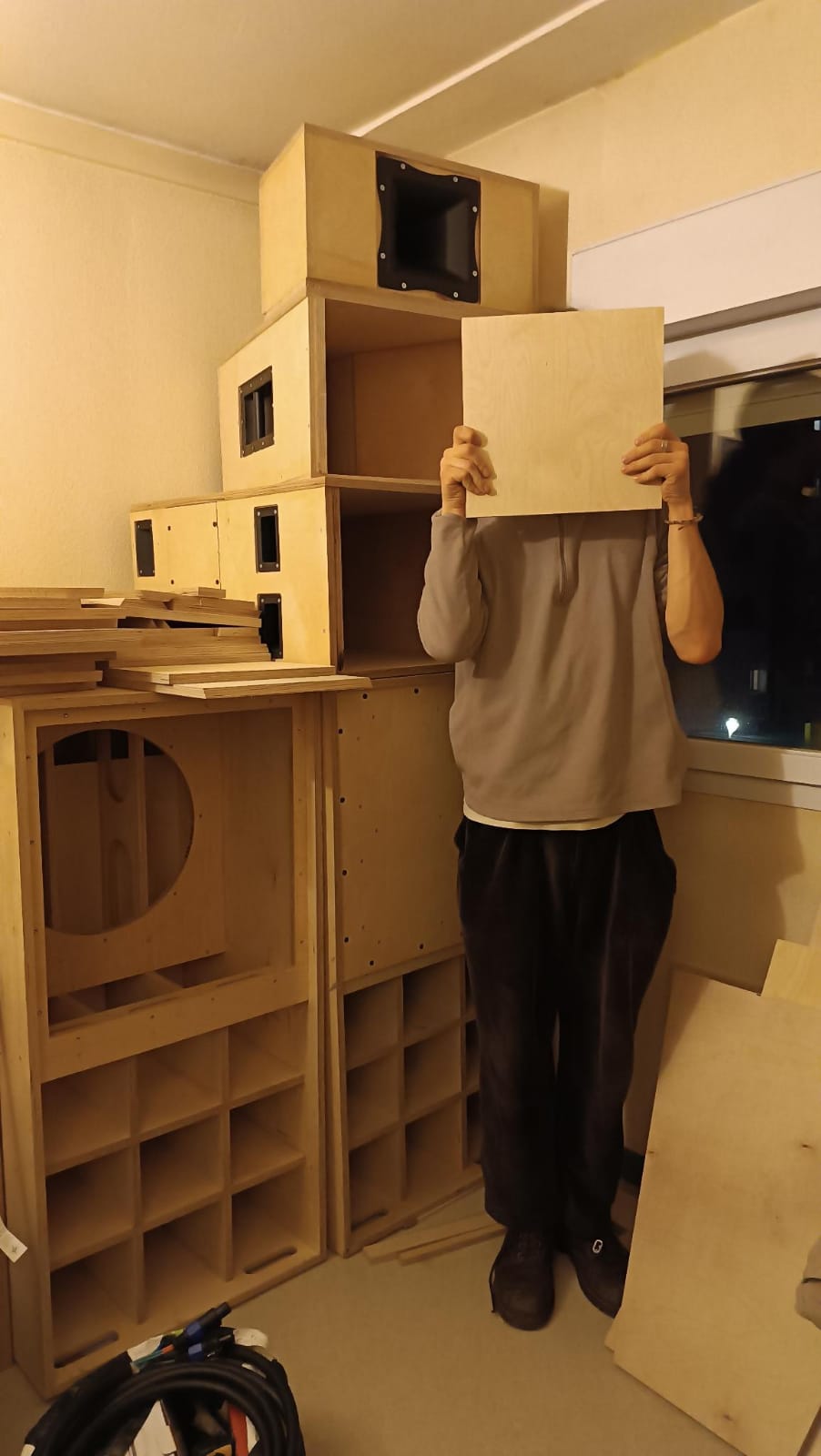 Et voilà ! On laisse un habitué s’occuper des subs à la CNC, mais tout le reste sera réalisé sans grande CNC (750×750 max pour des plaques de 1500×2500) et à l’aide de nos compétences. Il faut bien commencer quelque part !
