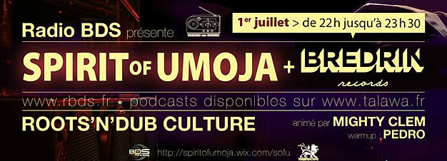 SPIRIT OF UMOJA radio show, animée par moi même! c’est un lundi sur deux, à partir de 21h (Warm up de Pedro jusqu’a 22h) et de 22h à 23h30 c’est SPIRIT OF UMOJA!