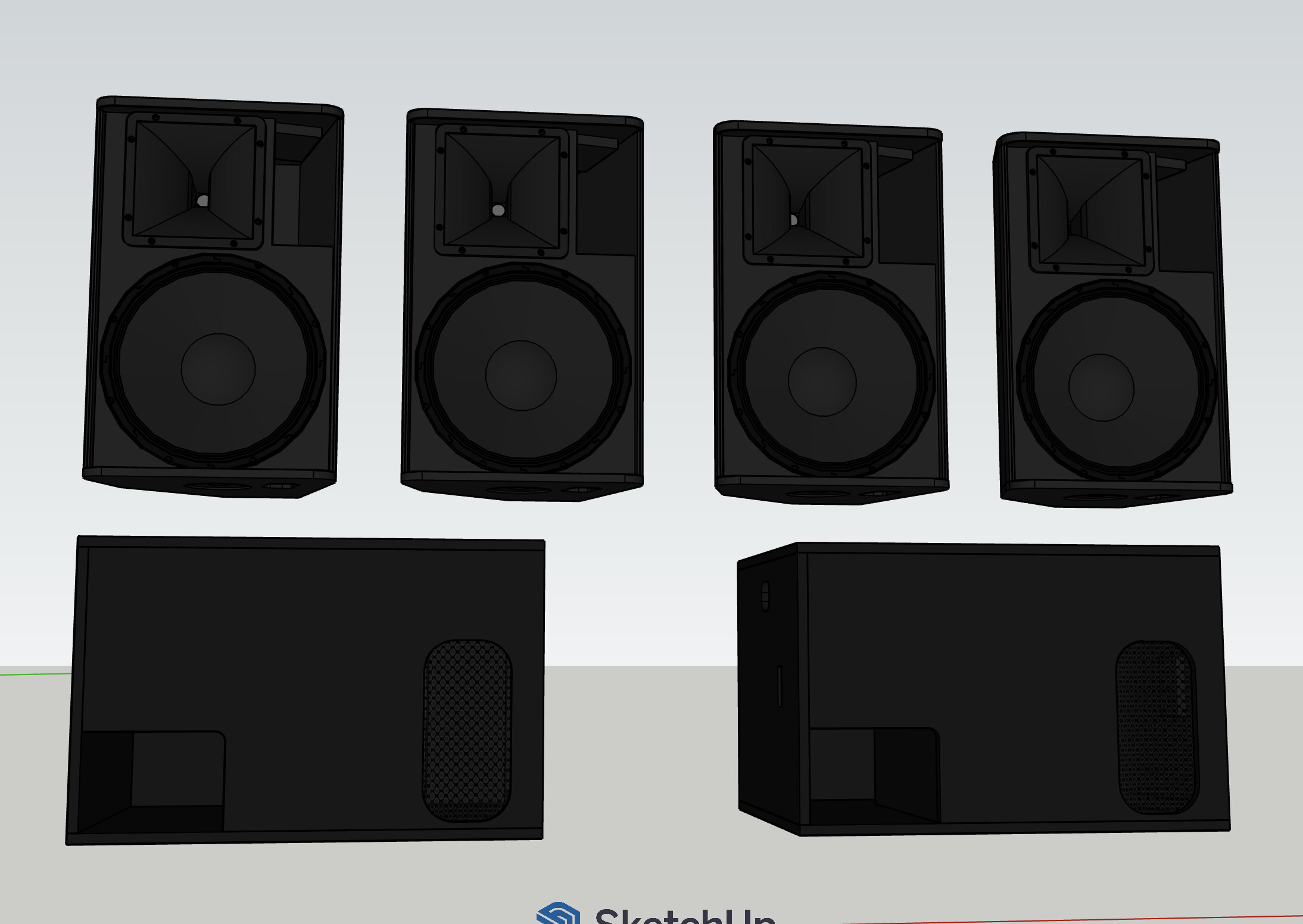 J’ai ce system Nexo qui commence à vieillir. Il est très bien certes mais les caissons commencent à tirer la gueule, et je n’aime pas l’esthétique qu’il proposent : Subs posés à plat, avec 4 enceintes sur pieds.